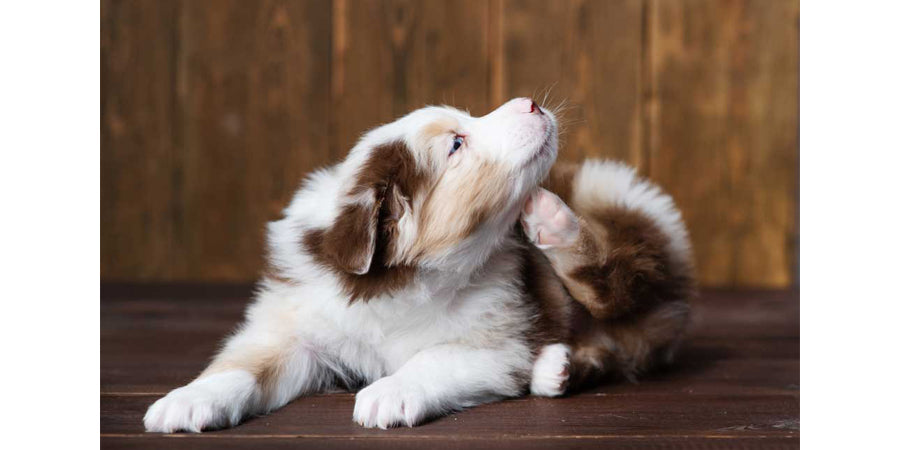 ● Pulgas: Si tu perro tiene pulgas lo verás rascarse con frecuencia y desesperación. Suelen mordisquear la piel por el efecto de la mordedura del parásito, en casos severos los dueños han observado manchas rojas con un halo claro, pústulas y costras. Algunos perros pueden ser alérgicos a la mordedura de pulga y sufren dermatitis alérgica.